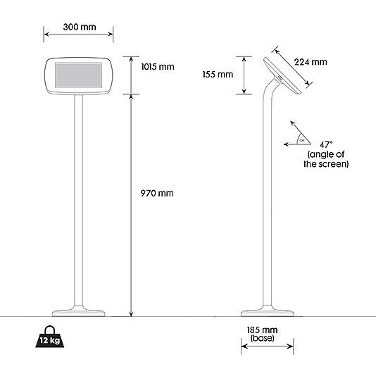 De iPad / Android kiosk houder Floorstanding is een stevige staander voor iPad of Galaxy.