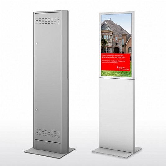 Design totem LED 32"-55". Full HD Portrait, Casing: powder coated steel, Front: Metal, Door: back, Standard colour:RAL9006 ALU, WxHxD (+/-) :46"=595x2020x110, 55"=595x2220x110