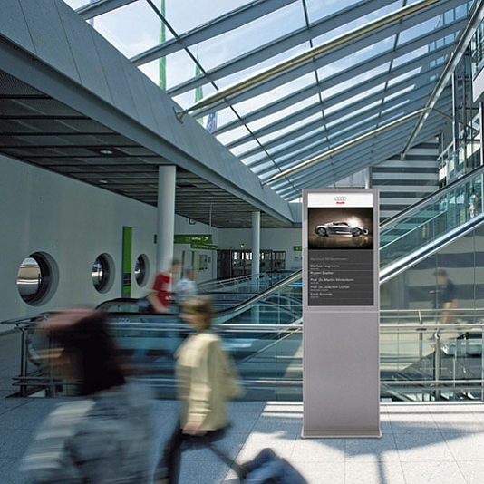 De totem is uitgerust met een full HD LCD scherm en kan optioneel uitgerust worden met een touchscreen, keyboard, speakers en ingebouwde mediaplayer.